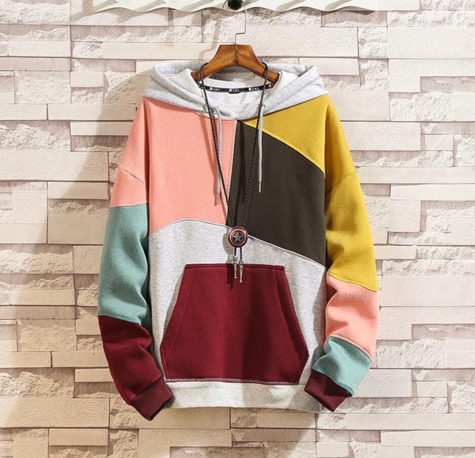 - 夏上質メンズ裏起毛 パーカー パッチ柄 切替 配色 フード付き 裏ボア 厚手 トレーナー アウター 暖か 防寒 保温 おしゃれ 2色 YWQ1582