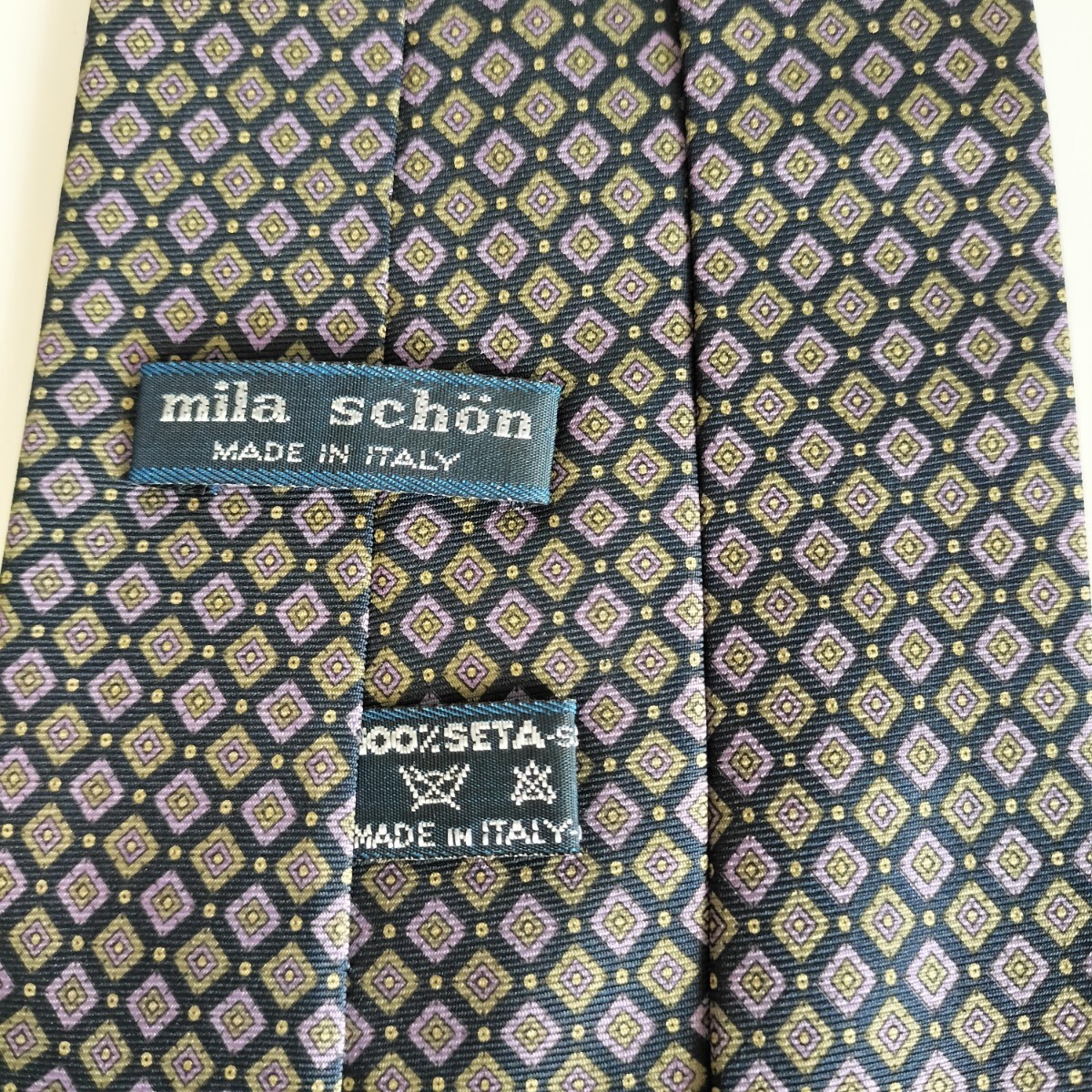 - ミラショーン(Mila Schoen)紺緑紫ミニ四角柄ネクタイ