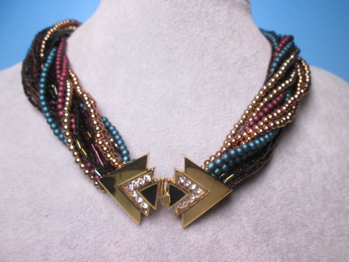 - ☆ラインストーン留め具付きビーズ24連のボリュームネックレス