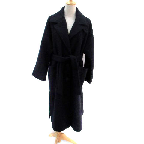> エモダ EMODA ガウンコート オープンカラー ロング丈 リボンベルト付き F 紺 ネイビー /HO18 レディース