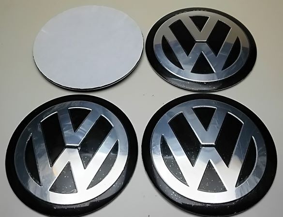> VW フォルクスワーゲン 56mm 黒銀 4こ ステッカー ホイールキャップ トゥアレグ ゴルフ ポロ ビートル ティグアン パサート アップ