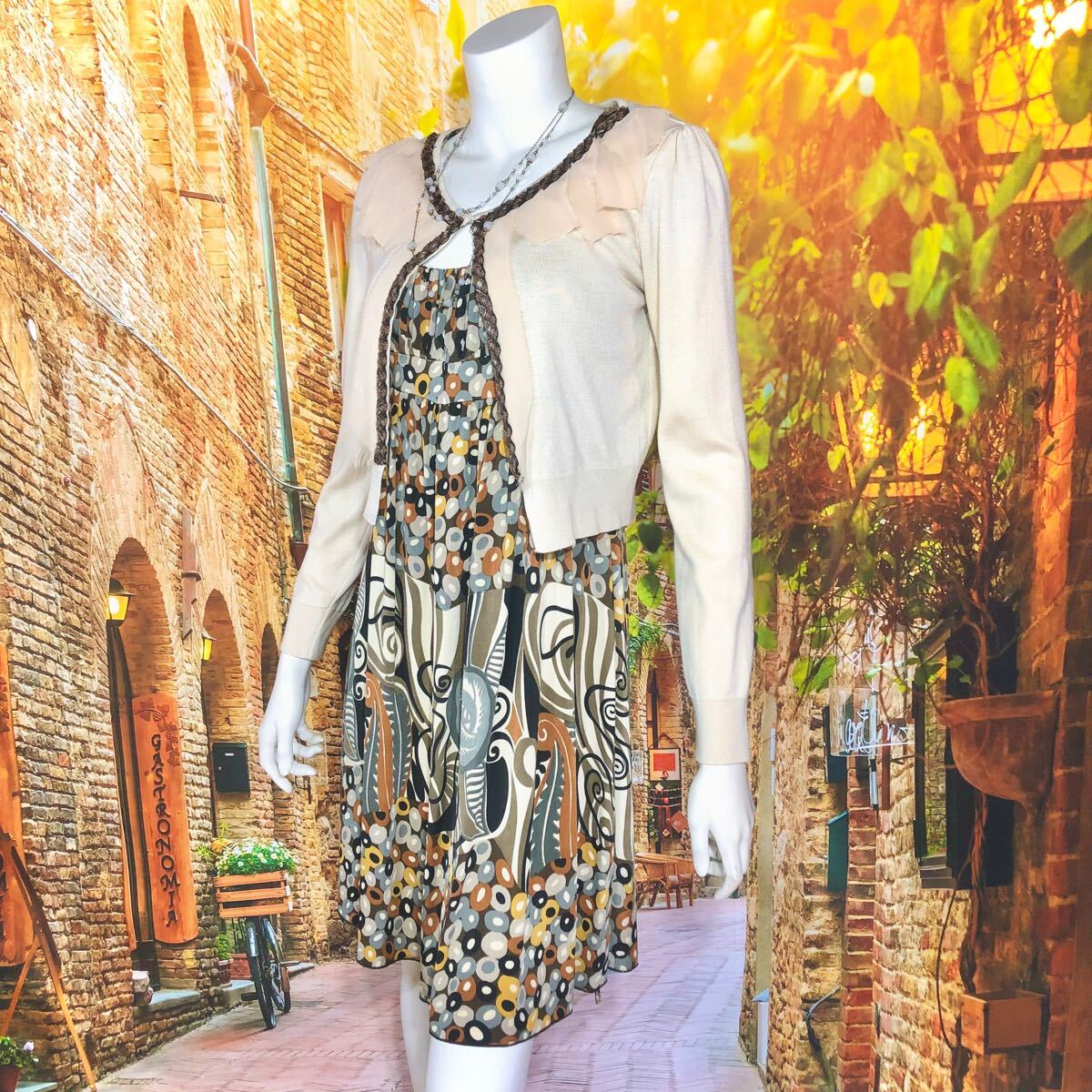 - FIFILLES ブラウンデザインワンピース XS-S ベージュボレロカーディガンM
