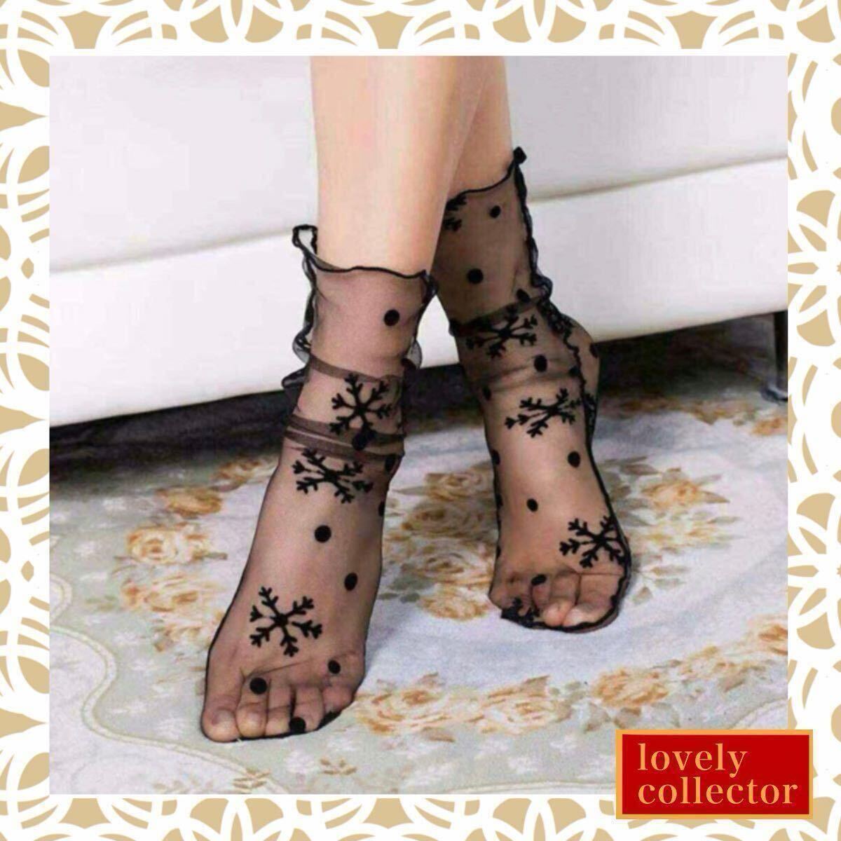 - レディースソックス シースルーソックス レース ショート原宿風 スノー柄