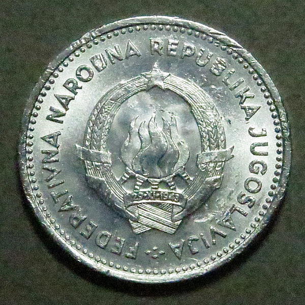 - ユーゴスラヴィア 1952年 昭和27年 2ディナール アルミ貨幣 g4916