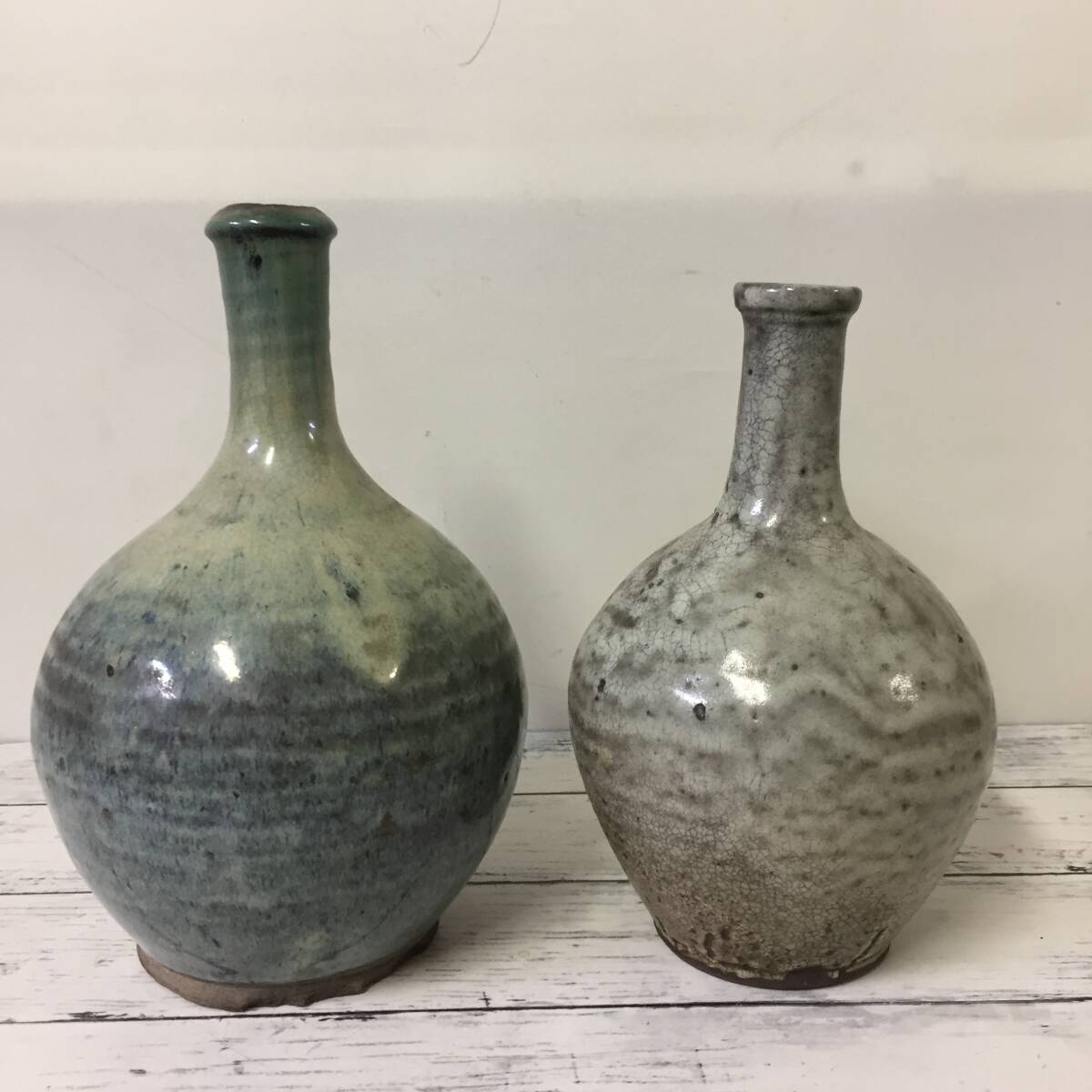 - 花瓶 花器 2個セット 在銘無 骨董 陶器 アンティーク