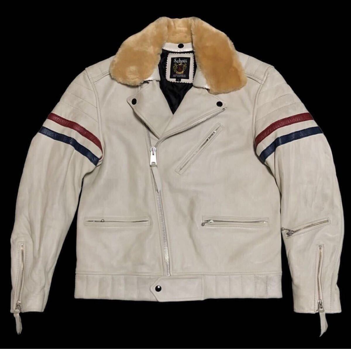 > ● Schott ショット ● 本革 牛革 本革 ボア 取外し可 ユーズド加工 SKI-DO ダブル ライダース ジャケット アイボリー L