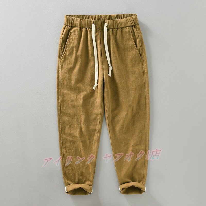 - ☆新品初売りパンツ メンズ 亜麻 スラックス 高級 リネン混 ロングパンツ サマーパンツ チノパン 無地 ストレート サイズ選択可 コーヒー