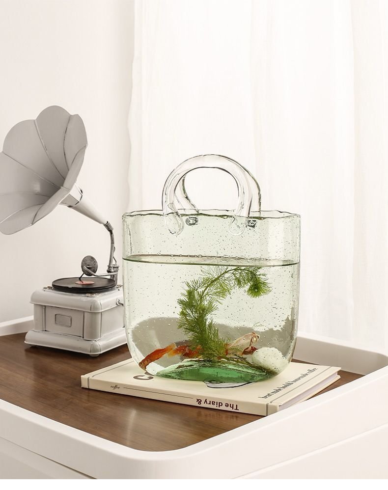 - 花瓶 ガラスのカバン 北欧 おしゃれ 金魚鉢 フラワーアレンジメント クリアガラス フラワーベース 観葉植物 花器 オシャレ かわいいLHA051