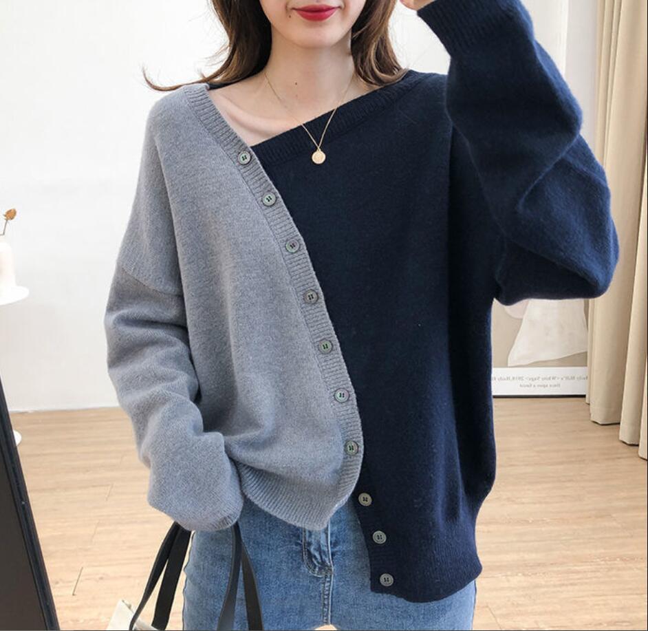 > 2色選ぶ * 秋冬新品 * ニット セーター トップス レディース 不規則 配色 セーター 長袖 ゆったり ニット 大きいサイズ きれいめ *