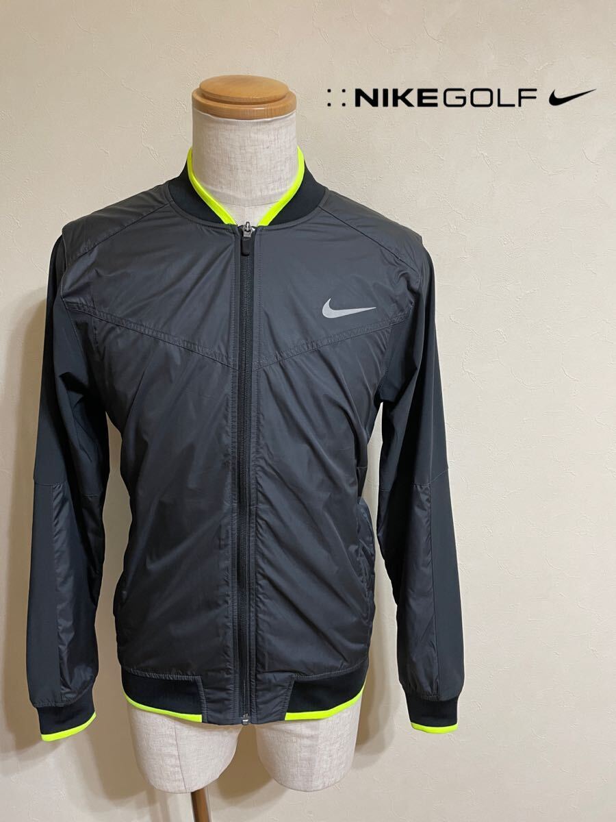 - 【美品】 NIKE GOLF ナイキ ゴルフ ツアーパフォーマンス ウインド ジップ ジャケット トップス サイズM 長袖 黒 ネオンイエロー 170/88A