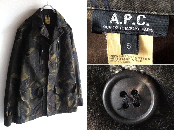 - 希少 フランス製 90sビンテージ A.P.C. アーペーセー 迷彩 カモフラ コットンモールスキン F2ジャケット ミリタリージャケット S カーキ