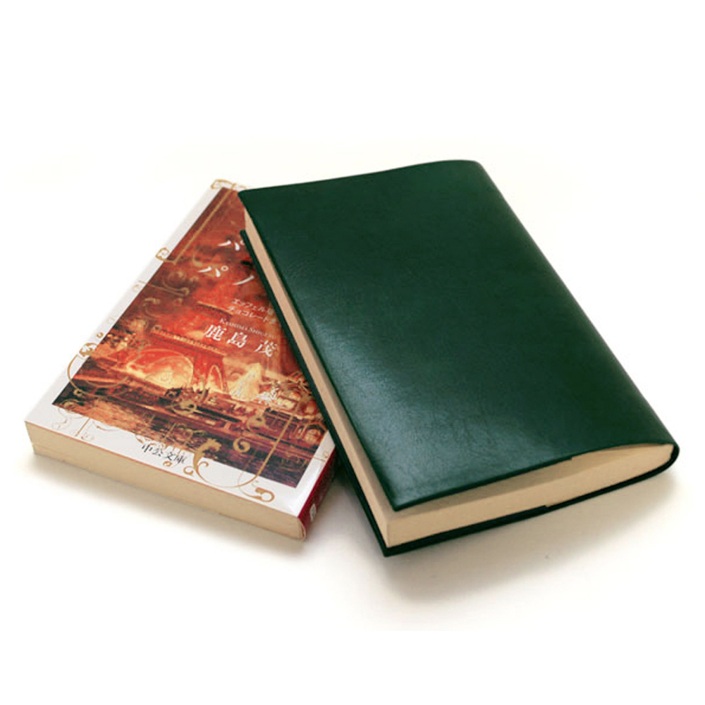 - 送料込み★お手入れいらずのリサイクルレザーで作ったブックカバー★文庫版 350ページ程度対応★クロムグリーン