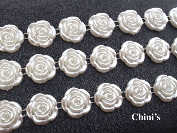 - 即決 ! 0.5mよりパールビーズトリム バラ ガーランド☆ハンドメイド テープ 薔薇 カルトナージュ