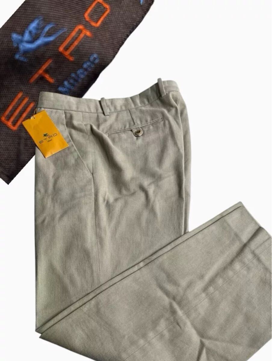 - ETRO パンツ メンズ W34L30ベージュ コットン チノ カーキ フラットフロントフレックス イタリア製