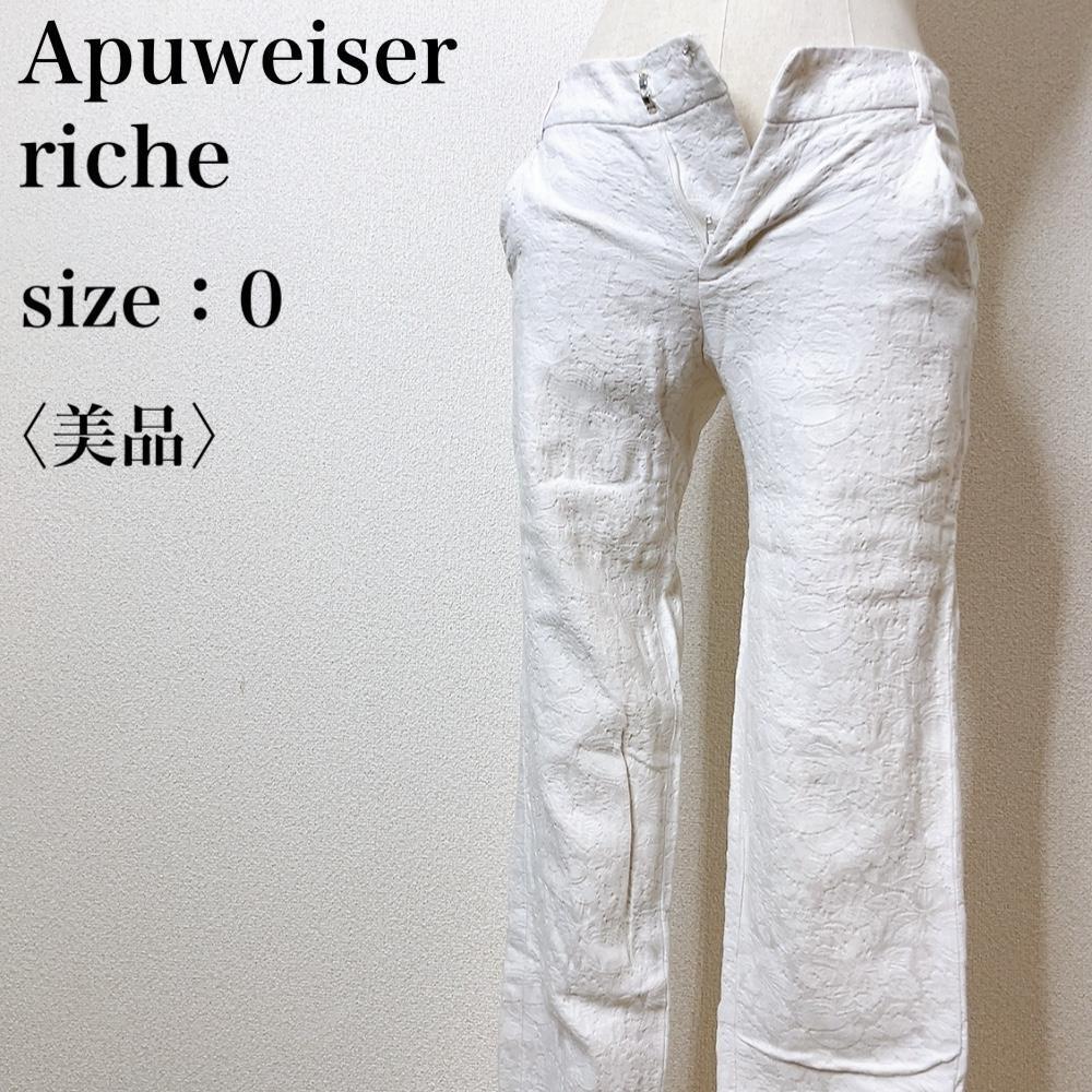 > 【美品】Apuweiser-riche アプワイザーリッシェ フェミニン ストレッチ 上品 花柄カジュアルパンツ ジャガード 高級感 ホワイト ら19
