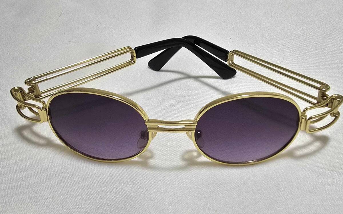 - WブリッジWテンプル ゴールドメタル パープルレンズ サングラス