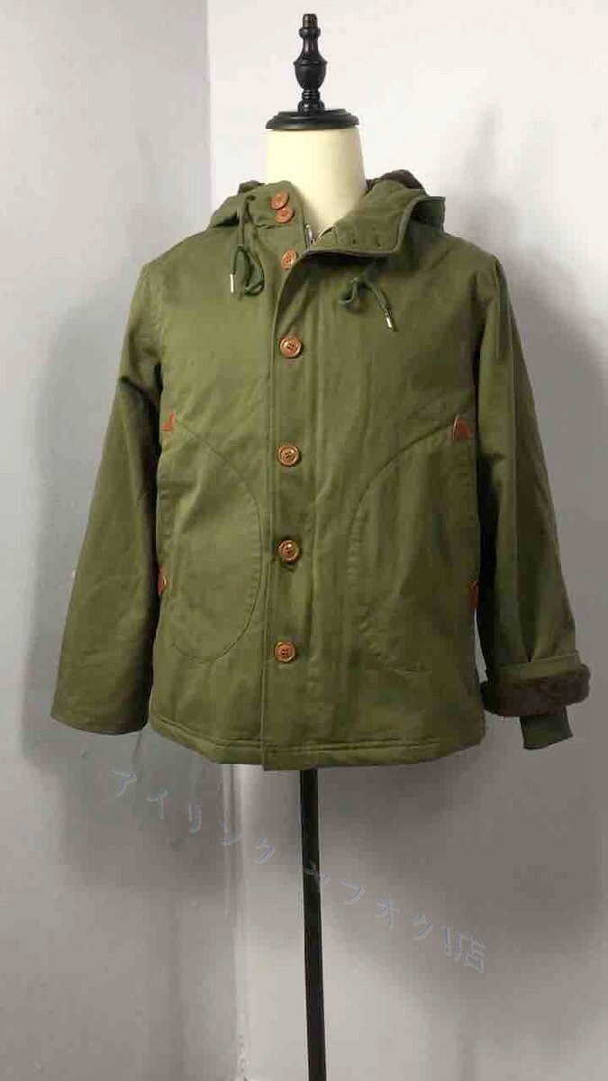 - 新品レトロ フード付き ハンティングジャケット トレンチコート メンズ ゆったり 綿97% 裏起毛 防寒強い ワークウェア M