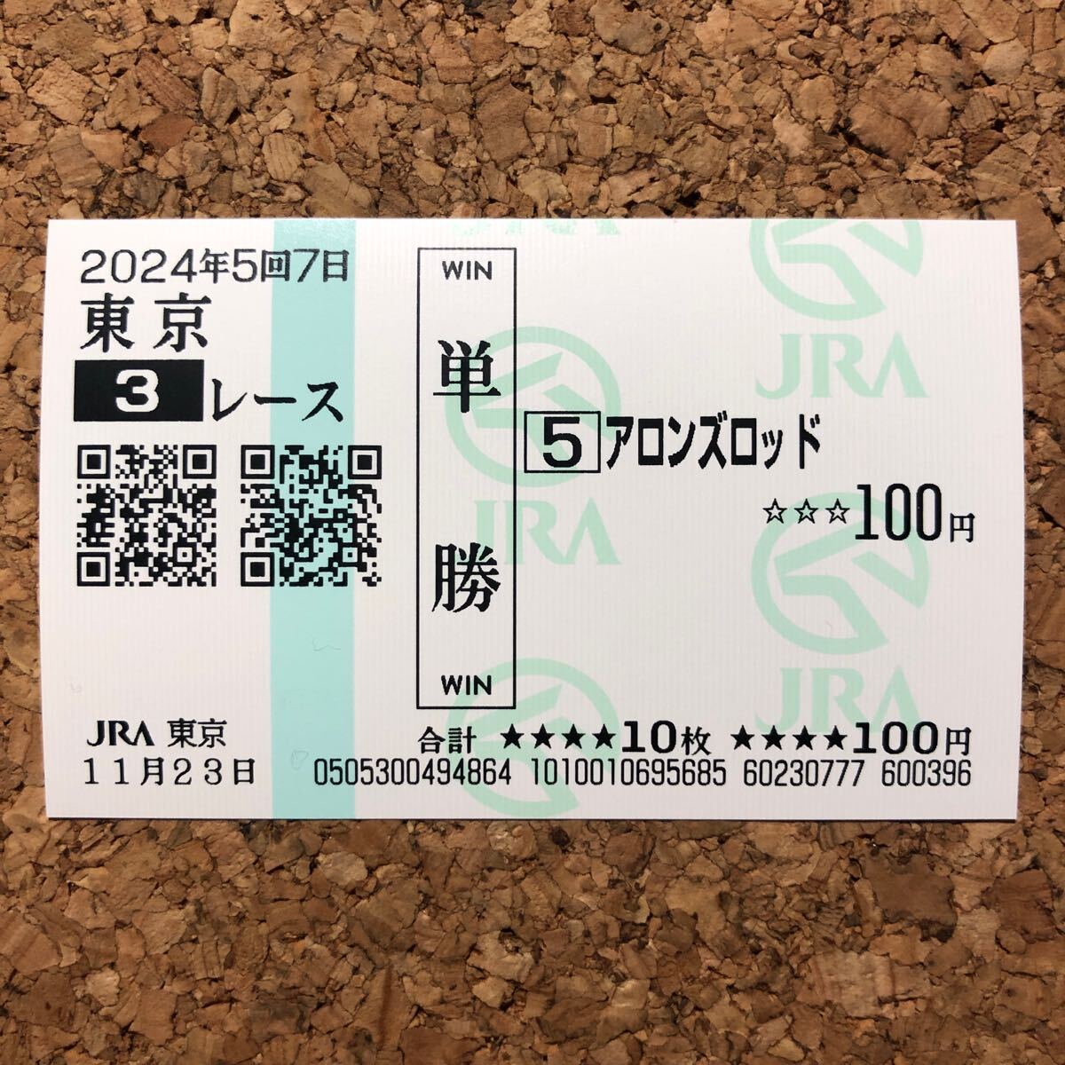 - アロンズロッド 現地購入単勝馬券 2歳未勝利 2024年11月23日 東京競馬場 ルメール シルクレーシング JRA