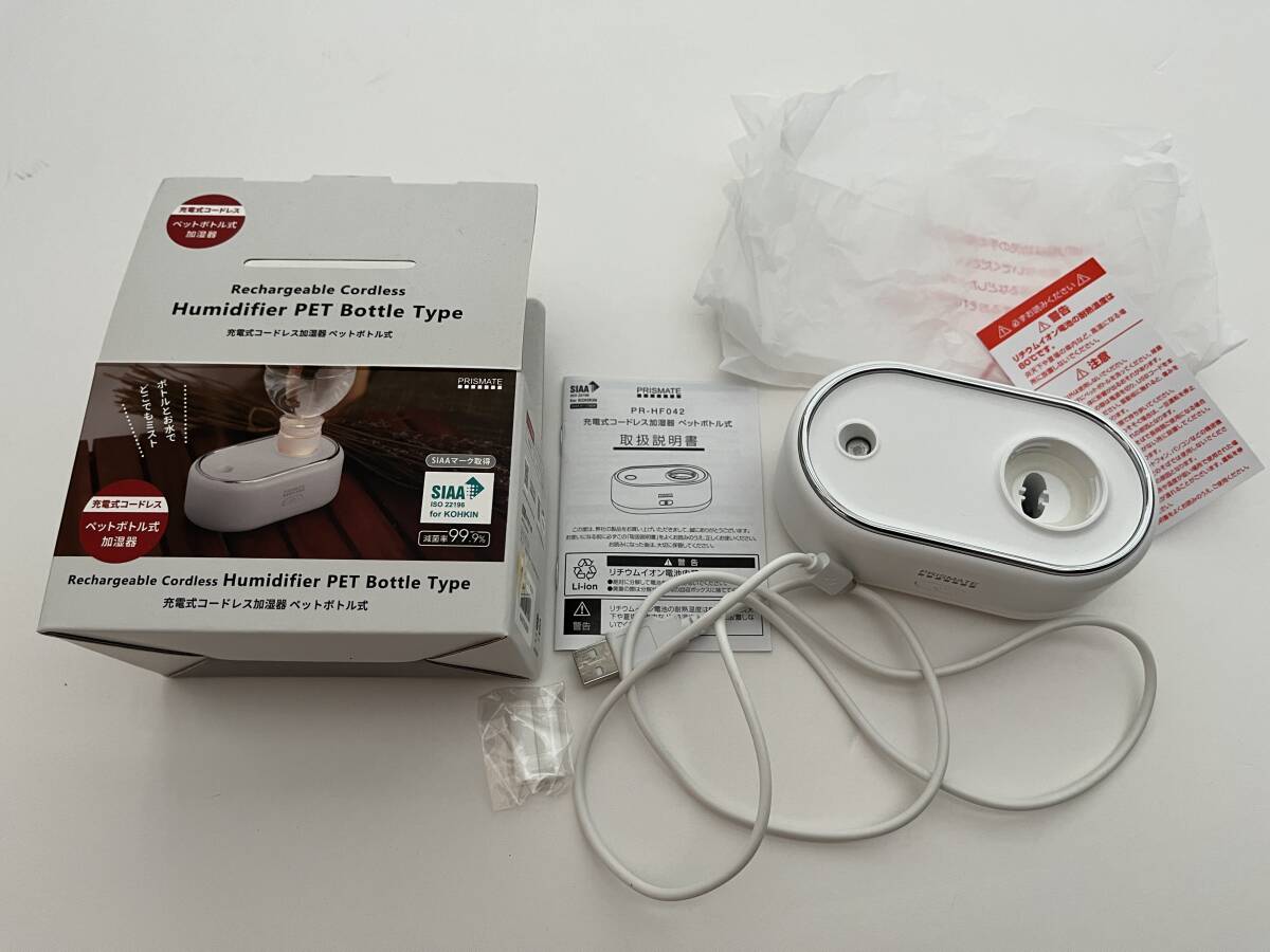 - △PRISMATE 充電式コードレス 加湿器 ペットボトル式 SIAAマーク取得製品 半永久抗菌 滅菌率99.9% Loft購入 2970円 動作確認済み 匿名発送