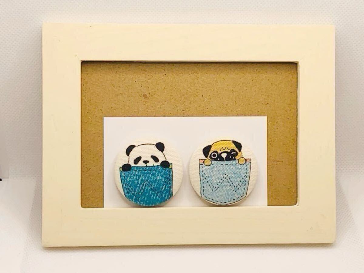 - くるみボタン(11-13)マグネット/磁石/ハンドメイド/2個セット/パンダ/犬