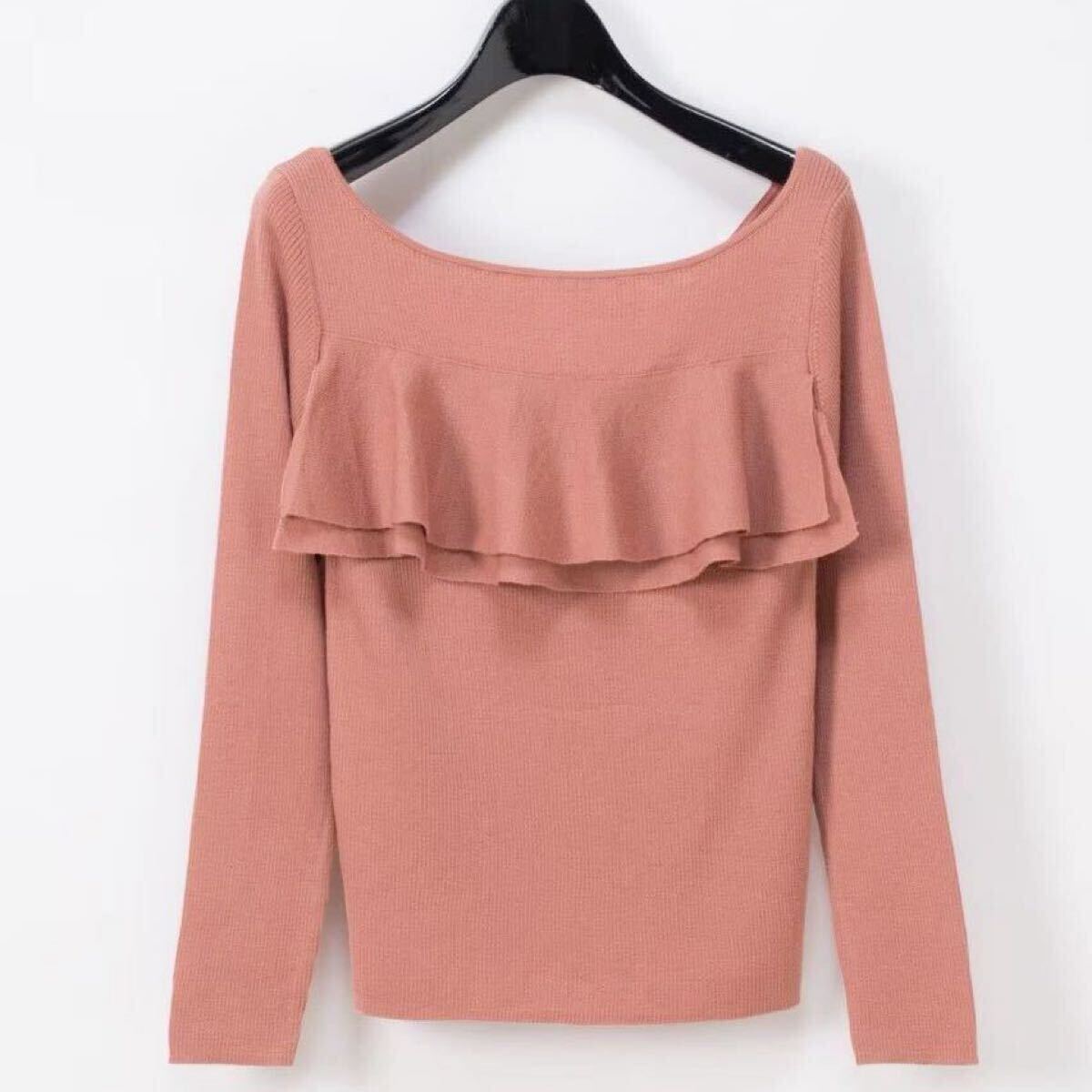 グレースコンチネンタル フリルボートネックニットトップ 2万900円 スタイスト保管品 昨年2022年の初め頃購入しました 胸元にフリルを飾ったフェミニンニットです イタリアの“Botto Giseppe”(ボットジュゼッペ)社のインポート糸を使用した、さらっとした手触りのメリノウール100%を使用し、 ボディに沿う女性らしい細シルエットと落ち着いた大人な伸縮性あるニットで春まで着られる素材でおすすめです サイズ36ですがワンサイズ展開のためほぼフリーとお考えください 丈51センチくらい 落ち着いたピンクです 素材: ウール 100% 3回着用のみ 汚れなどなく綺麗なお品です ホームクリーニング済み