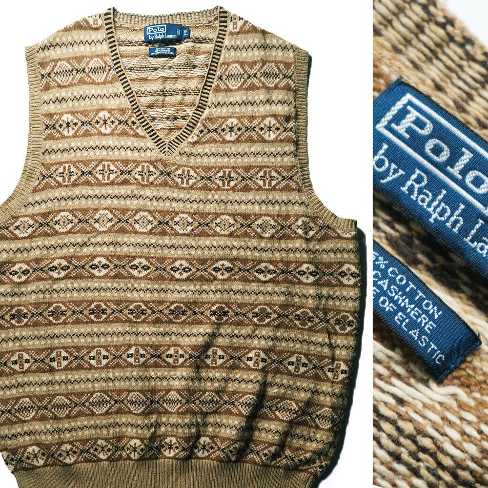 - 大きいサイズ【 RALPH LAUREN ラルフローレン 】極上カシミアコットン素材/フェアアイルVネックニットベストXLT/TALL