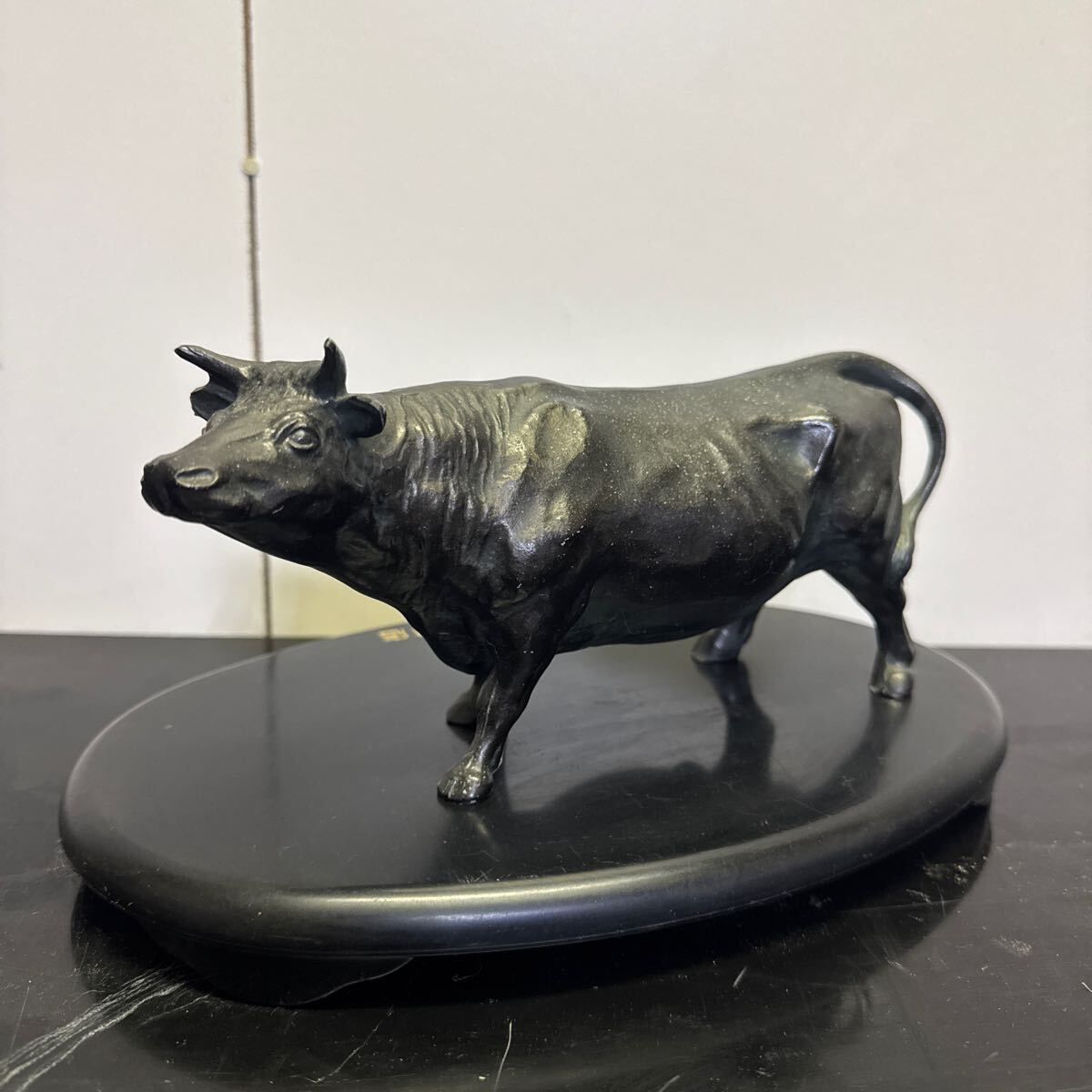 - 置物 インテリア オブジェ 牛 干支 cattle 日本 民芸品 金属製? 中古