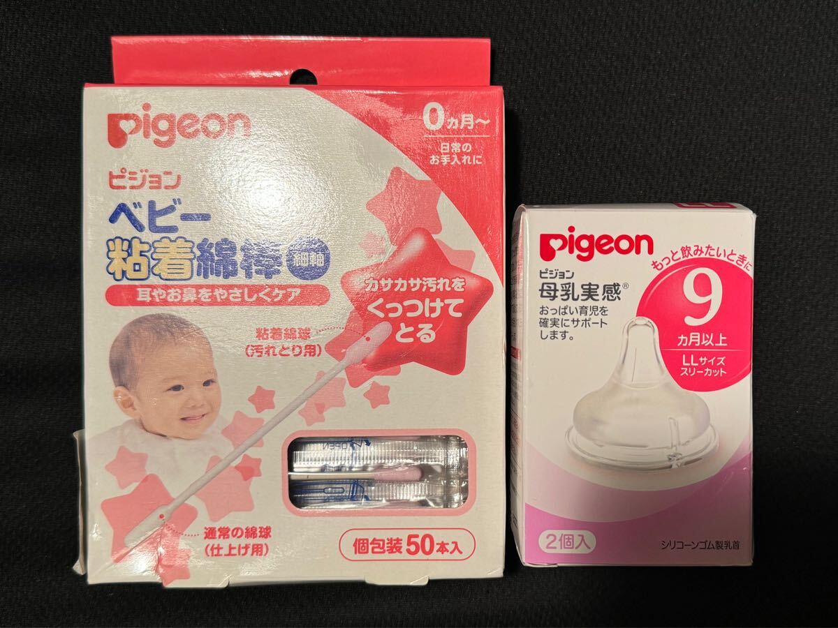- pugeon ピジョン 哺乳実感 乳首 とベビー粘着綿棒 新品未使用