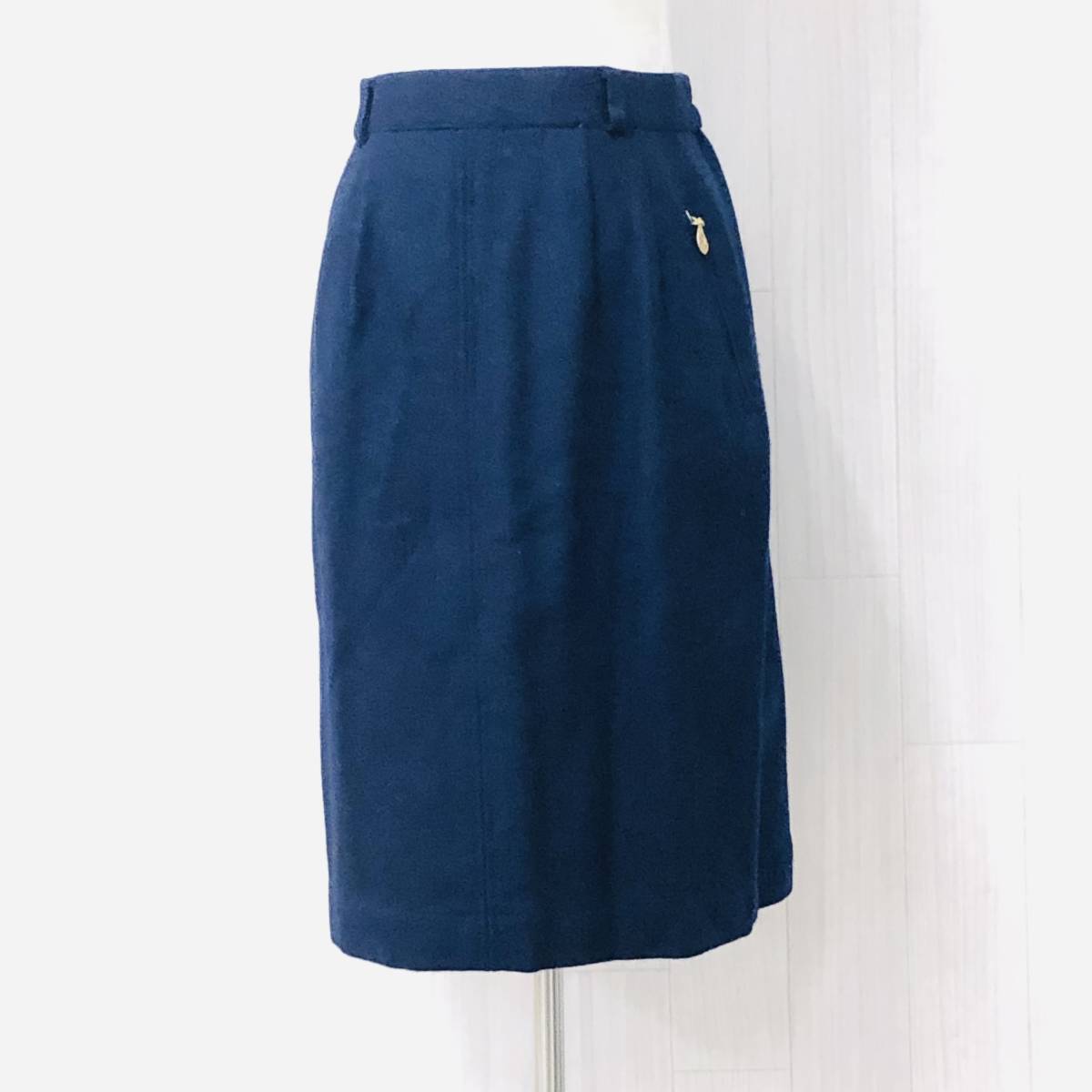 - YAS0187 T.taf レディース 台形スカートミドル丈 サイドポケット ウエストゴム(両脇) ネイビー 紺 無地 ウール 大人可愛い エレガント 上品