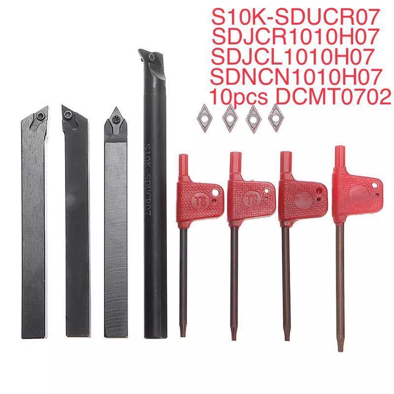 > 国内発送 旋盤 バイトホルダー 10mm 4本セット チップ付 左右 LR 新品 スローアウェイバイト バイトセット