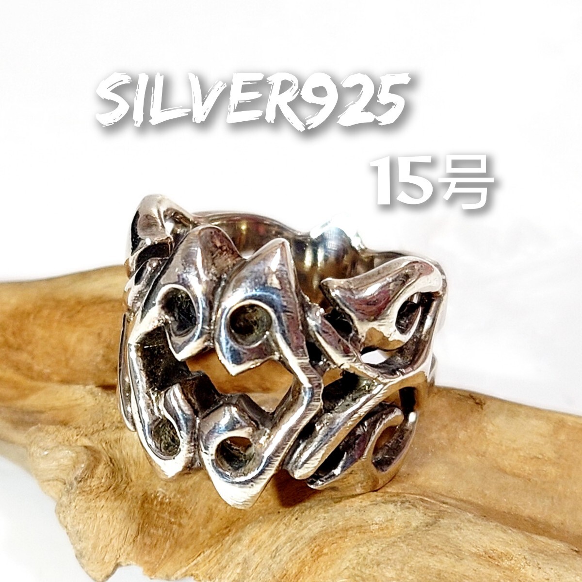 > 0964 SILVER925 透かし彫りアラベスクリング15号 シルバー925 重厚 トライバル 唐草 蔦 ワイド 幅広 ケルティック Tm氏作品 ハンドメイド