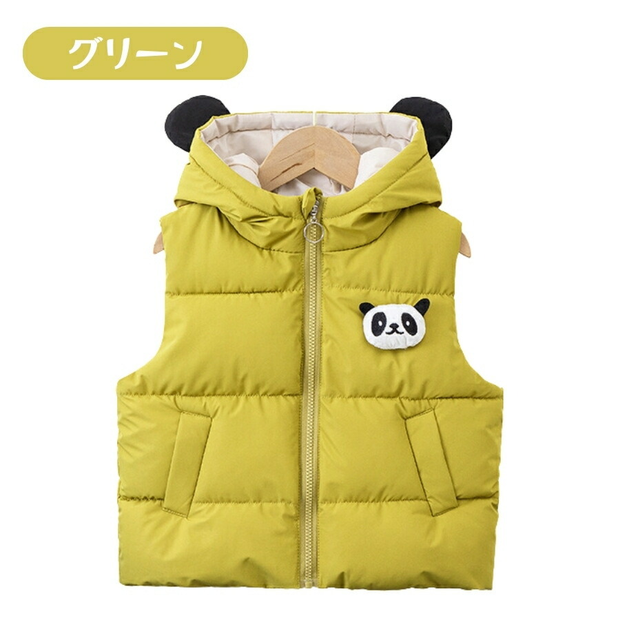 - グリーン 130? パンダ風 フード付き ノースリーブ ダウン ダウンジャケット あったかウェア キッズ 男の子 女の子 韓国子供服 春秋冬