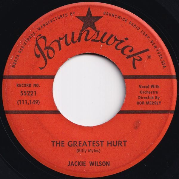> Jackie Wilson The Greatest Hurt / There'll Be No Next Time Brunswick US 55221 208412 R&B R&R レコード 7インチ 45