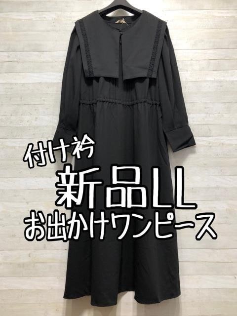 - 新品☆LL黒系♪付け衿付ワンピース♪きれいめやお出かけに〇B460