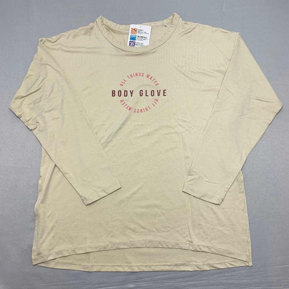 - 【送料無料】【新品】BODY GLOVE レディース長袖Tシャツ(ストレッチ素材 吸水速乾 UVカット チュニック丈) L ベージュ★23302