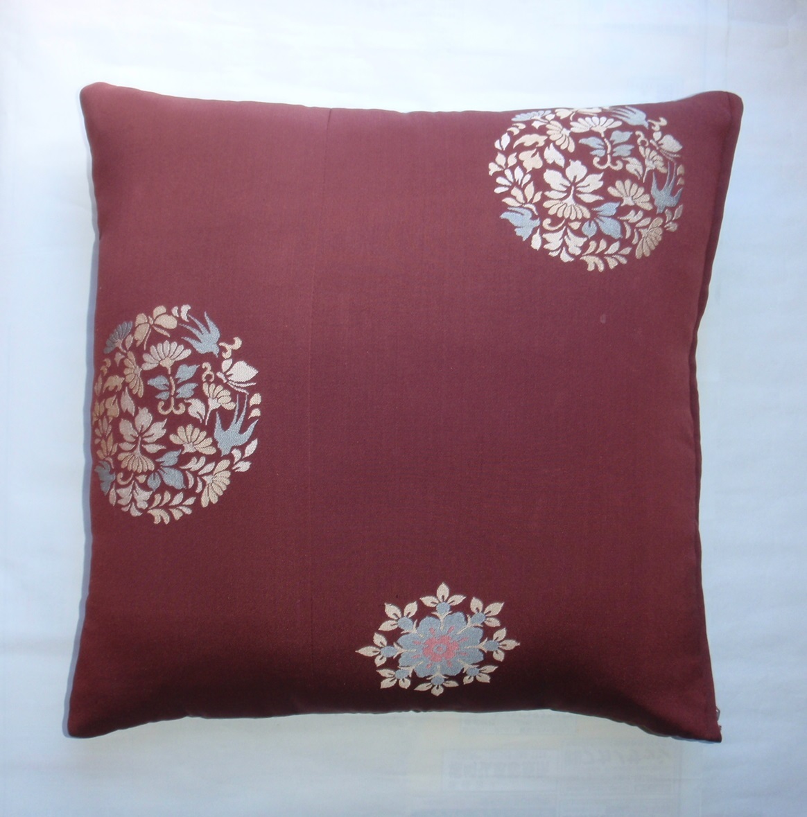 - ハンドメイド クッションカバー シルク着物地折込刺繍