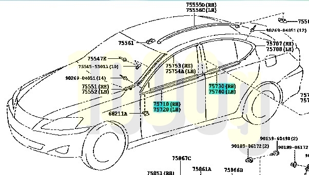 - 【トヨタ純正新品】TOYOTA 未使用品 ★超希少品★ GSE20 ドア水切りモール 4ドア用 1台分セット レクサスIS GSE20 GSE21