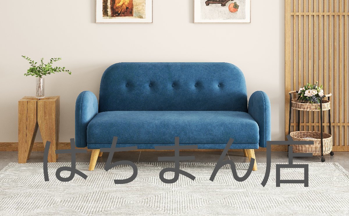 - ファブリックソファ、2人掛けソファ、クッション1個付き、木脚付き、脚なしで利用可能取り外し可