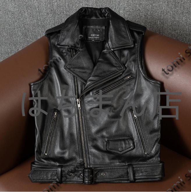 - メンズレザー ハレージャーキン ベスト 本革 牛革 バイクジャケット ライダース ベスト 黒 ☆S~5XL選択/1点