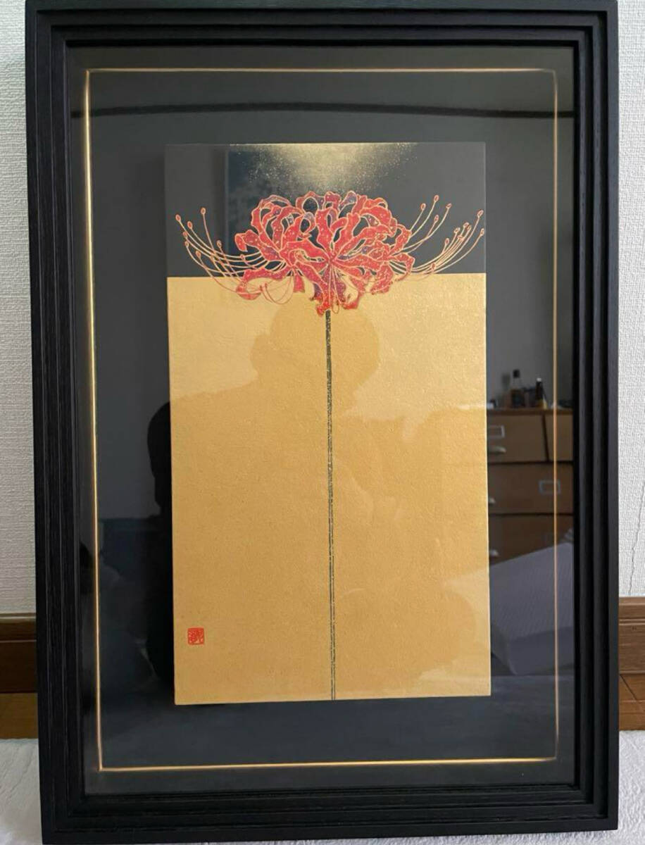 - 販売価格以下! 北澤 龍 真作 彼岸花(曼珠沙華) 日本画 新品未使用品