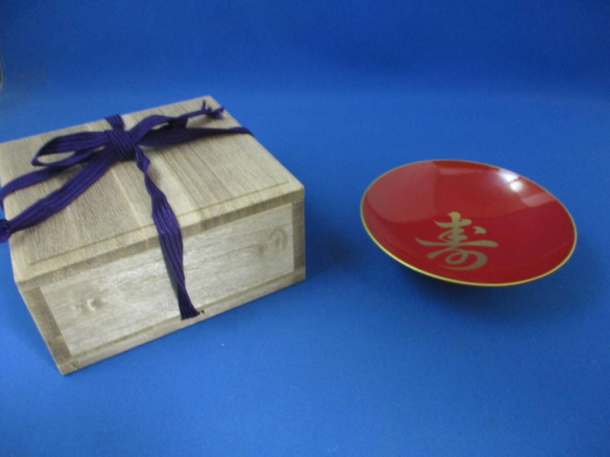- ★酒器 盃 寿 木箱つき 径11㎝ 高さ3㎝ 底に文字記載あり tm2412-1-10 ★