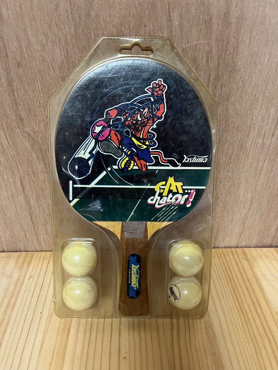 - 未開封 卓球 ラケット Yashima LEISURE デッドストック 未使用 シェークハンド 当時物 cat chator 猫