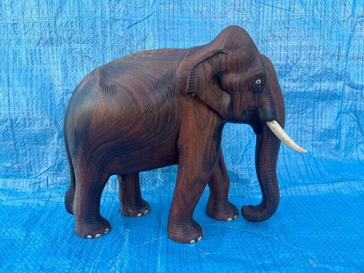- 【YO-555】 アジア象 象 置物 木製 工芸品 お土産 オブジェ インテリア 木彫り