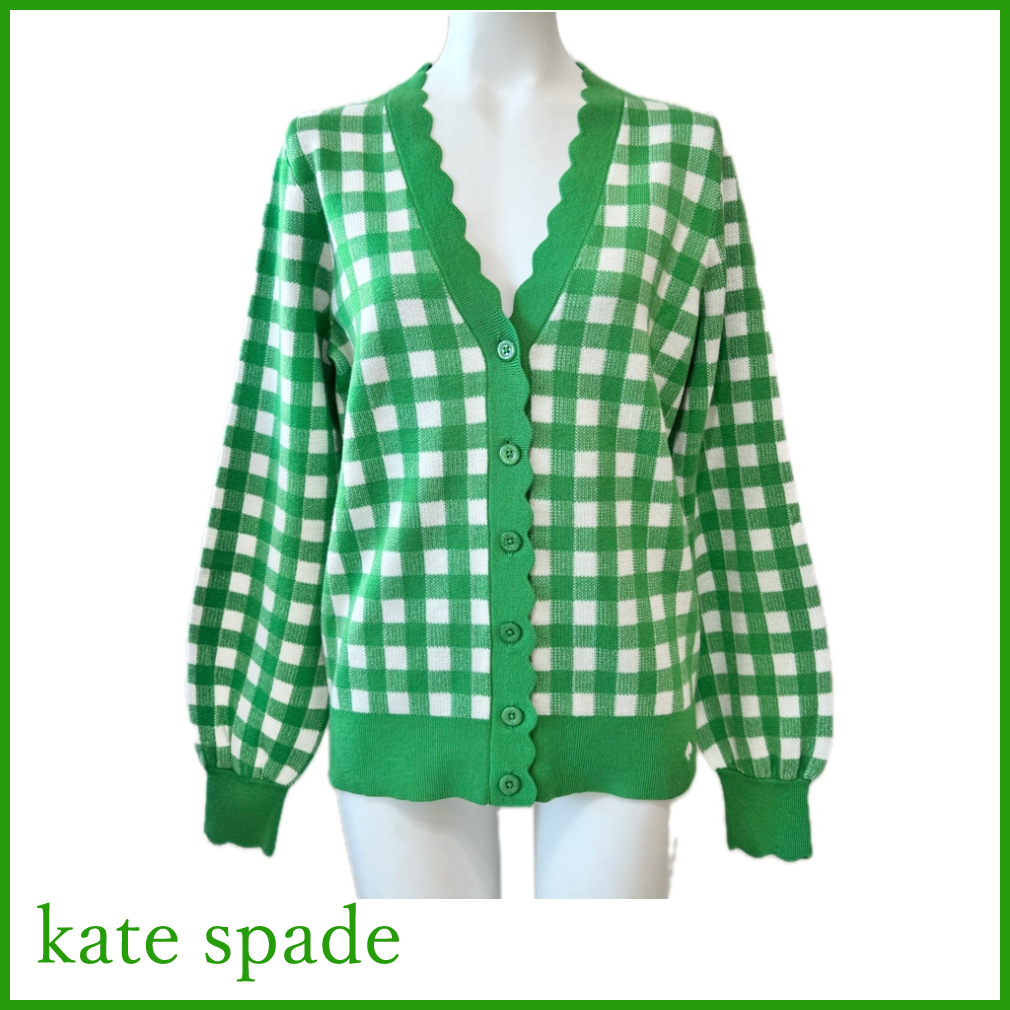 - 新品ケイトスペードkate spadeチェック柄カーディガン グリーン#XS★