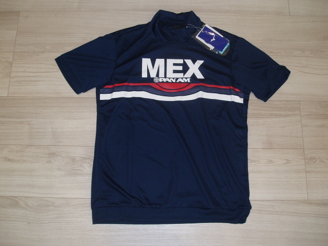 > 即決!新品★MIZUNO(ミズノ)の半袖シャツ ★PANAM パンナム メキシコ モックネック 【M】¥11,000 吸汗速乾 送料185円より N15
