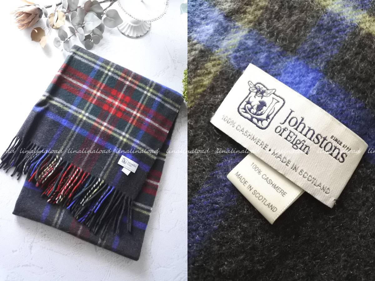 - 未使用 ジョンストンズ*カシミア 大判ストール グレーチェック withGrayGround タグ外し試着のみ