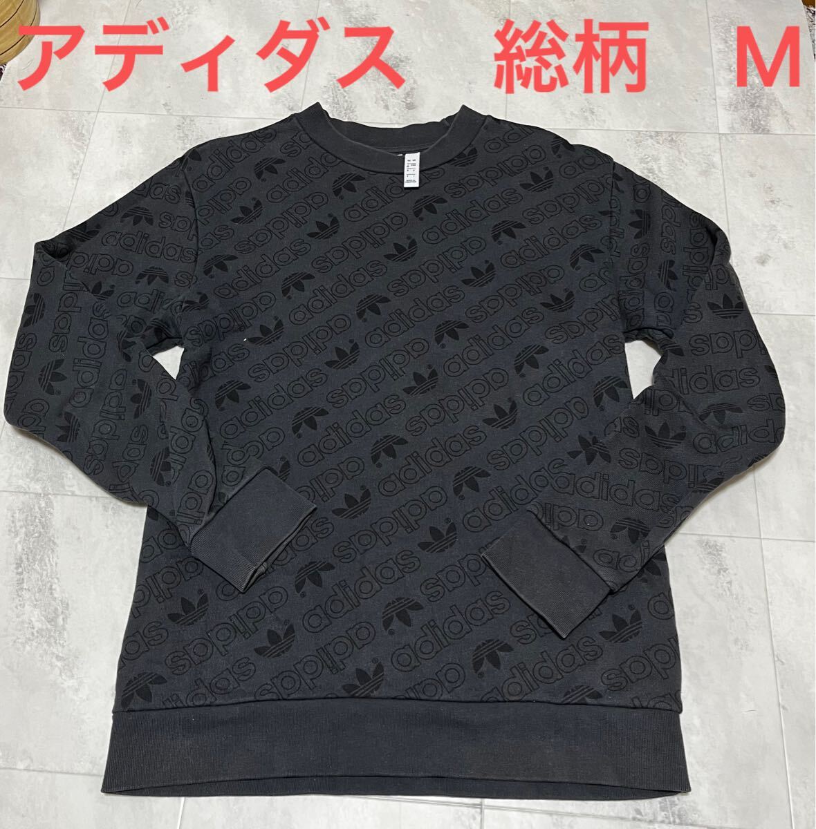 - アディダス adidas 総柄トレーナー ストレッチスウェット サイズM ブラック グレー