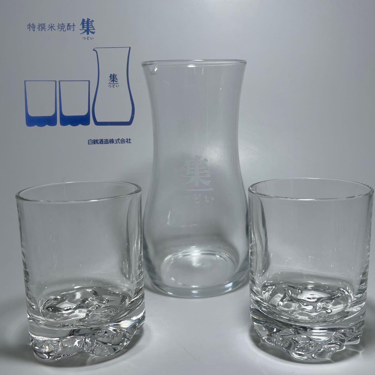 - 希少 白鶴酒造 ノベルティ 特選米焼酎 『集(つどい)』晩酌セット/水差し ピッチャー グラス コップ お酒 昭和レトロ 当時物 未使用 管T-135