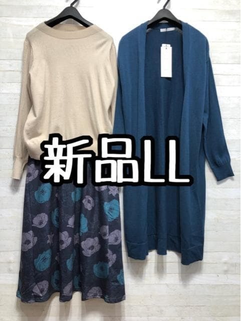 - 新品☆LL♪ニット&ロングトッパーカーデ&ロングスカート〇A855