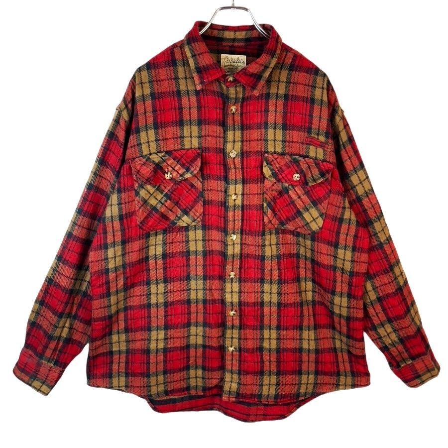 > カベラスCabelasフランネルシャツヘビーネルシャツゴツネル起毛チェック柄レッド赤ブラウン茶色コットンvintageヴィンテージ41008